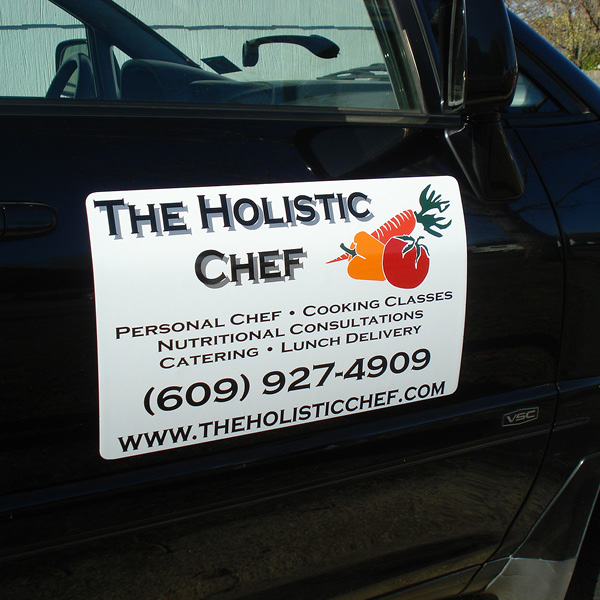 Premium quality 0.030" magnets available in any size – from small logo magnets for cars to large semi-truck signage, these magnets are made with outdoor-durable UV ink and will not fade, chip, or run when wet. Custom die-cut to any shape.